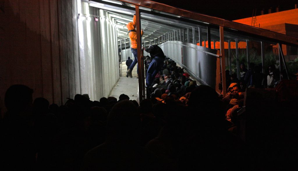 500 pessoas naquele momento, porque fui descobrir mais tarde que o número de palestinos que cruzam apenas esse checkpoint para poder trabalhar em Israel varia de 4 mil a 6 mil. Quatro mil a seis mil. E não quatro mil a seis mil por dia, mas quatro mil a seis mil trabalhadores palestinos – em um estreito corredor cercado por barras de metal – entre 4h e 7h da manhã. Vi palestinos correndo e escalando grades. Vi palestinos se deixando levar pela multidão. Vi palestinos mais afastados e virados para Meca, fazendo a primeira oração do dia.